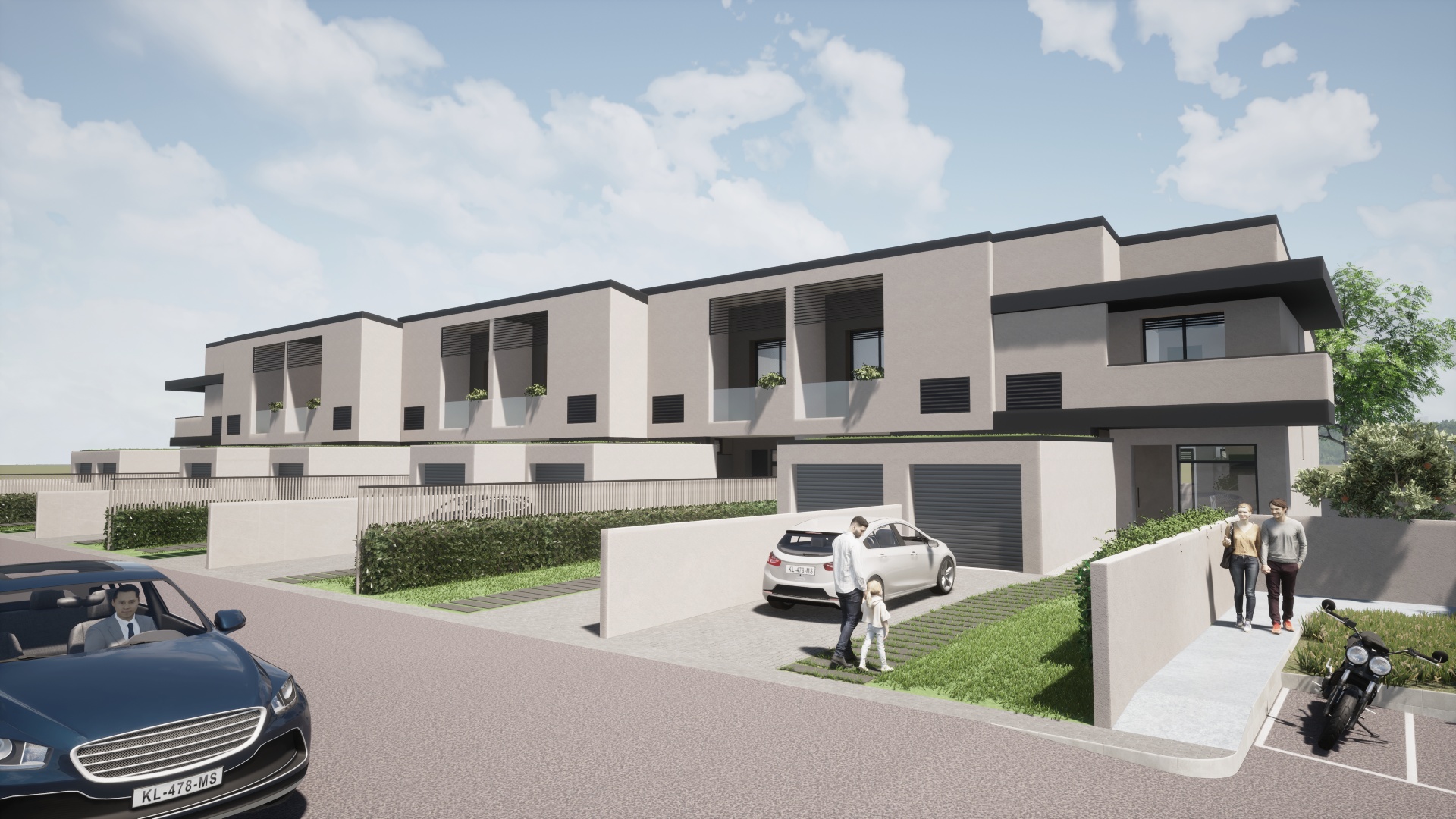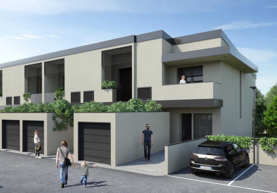l progetto si distingue per la cura delle aree esterne e del verde, con la piantumazione di alberi di media grandezza che creano un filtro naturale e migliorano la qualità ambientale del complesso. La corte, completamente recintata, è accessibile tramite un ingresso carrabile e due accessi pedonali. Ogni villa è dotata di accesso indipendente, garantendo privacy, autonomia e comfort abitativo.